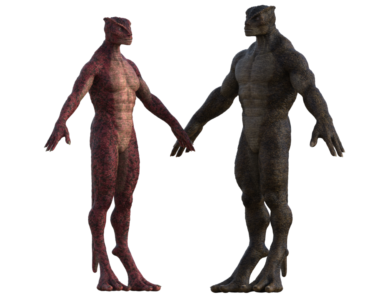 Thermal regulation occurs through subtle pigmentation shifts in their scales, dispersing or retaining heat through microscopic vascular channels. Their hearts and lungs are oversized relative to humanoid norms, supporting brief, superlative bursts of strength and endurance.
