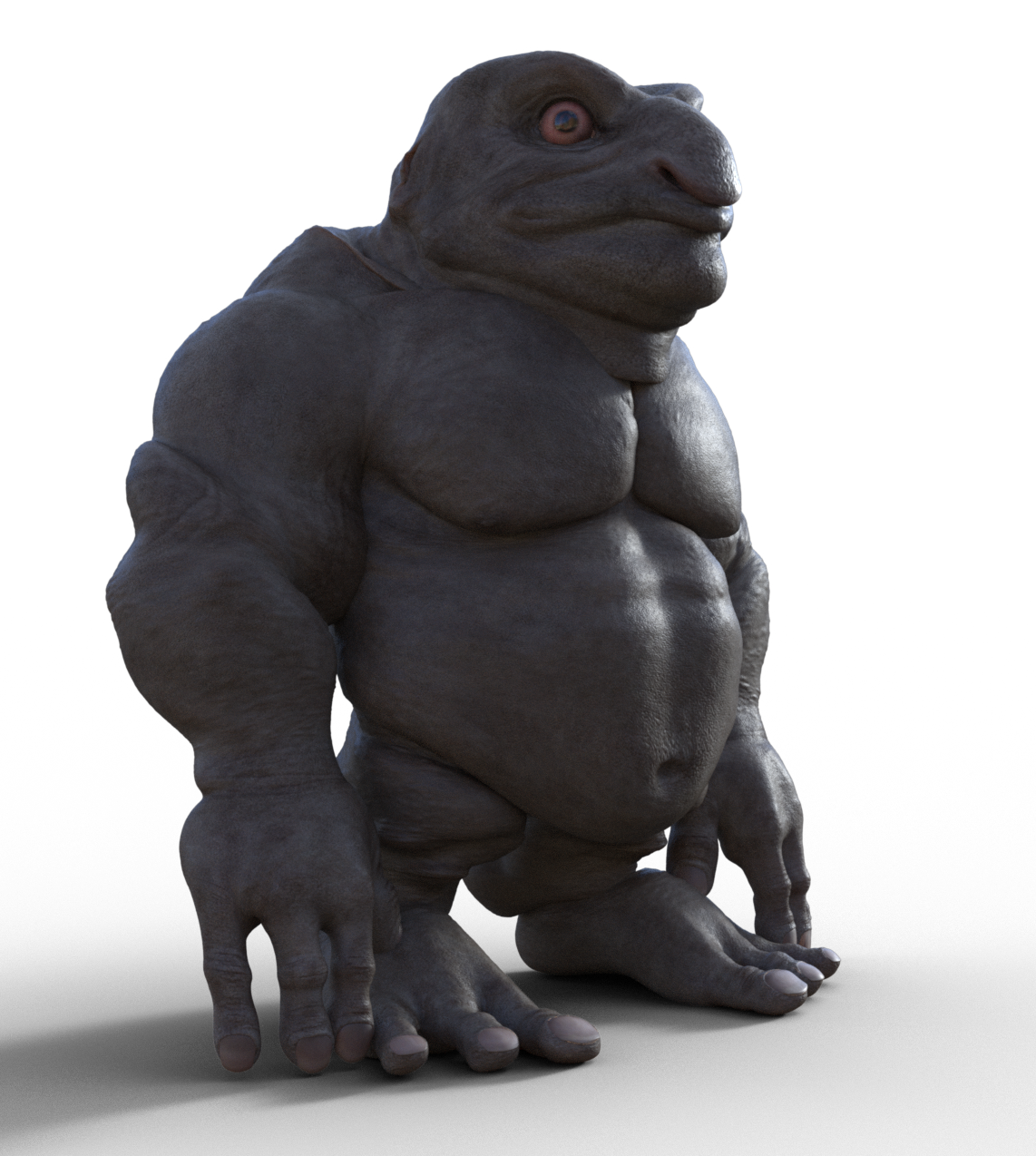- Limbs: Thick arms and legs with large, stubby hands and feet. They possess four fingers with an opposable thumb and three short toes, designed for strength and stability.