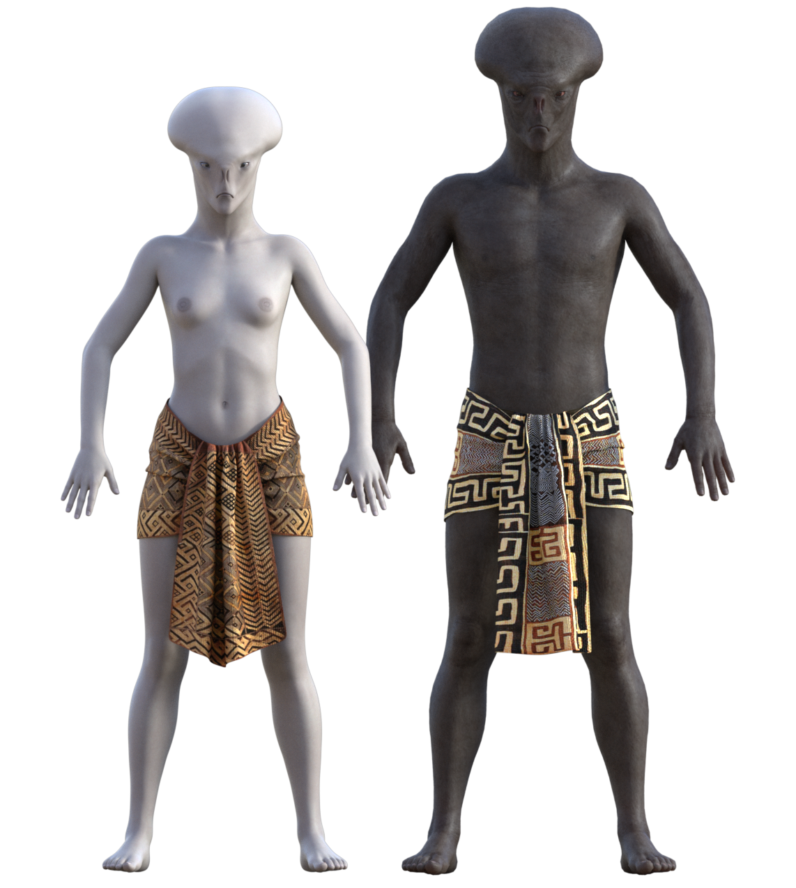 Laymonians share all classical Yalaerin biological features: enlarged craniums, slit ears, narrow eyes, and high Magicka aptitude. Their defining characteristic is the recessive Xᴾ allele, responsible for their pale skin.