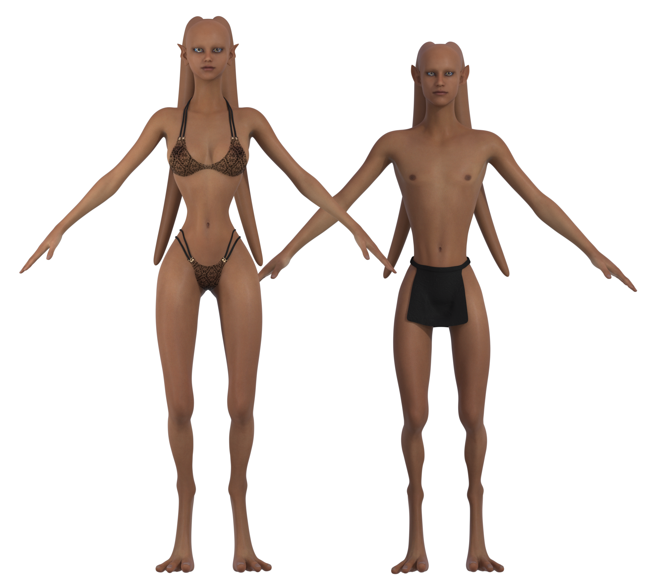 - Males: Lithe and less muscular than Human males, yet similar in overall appearance.