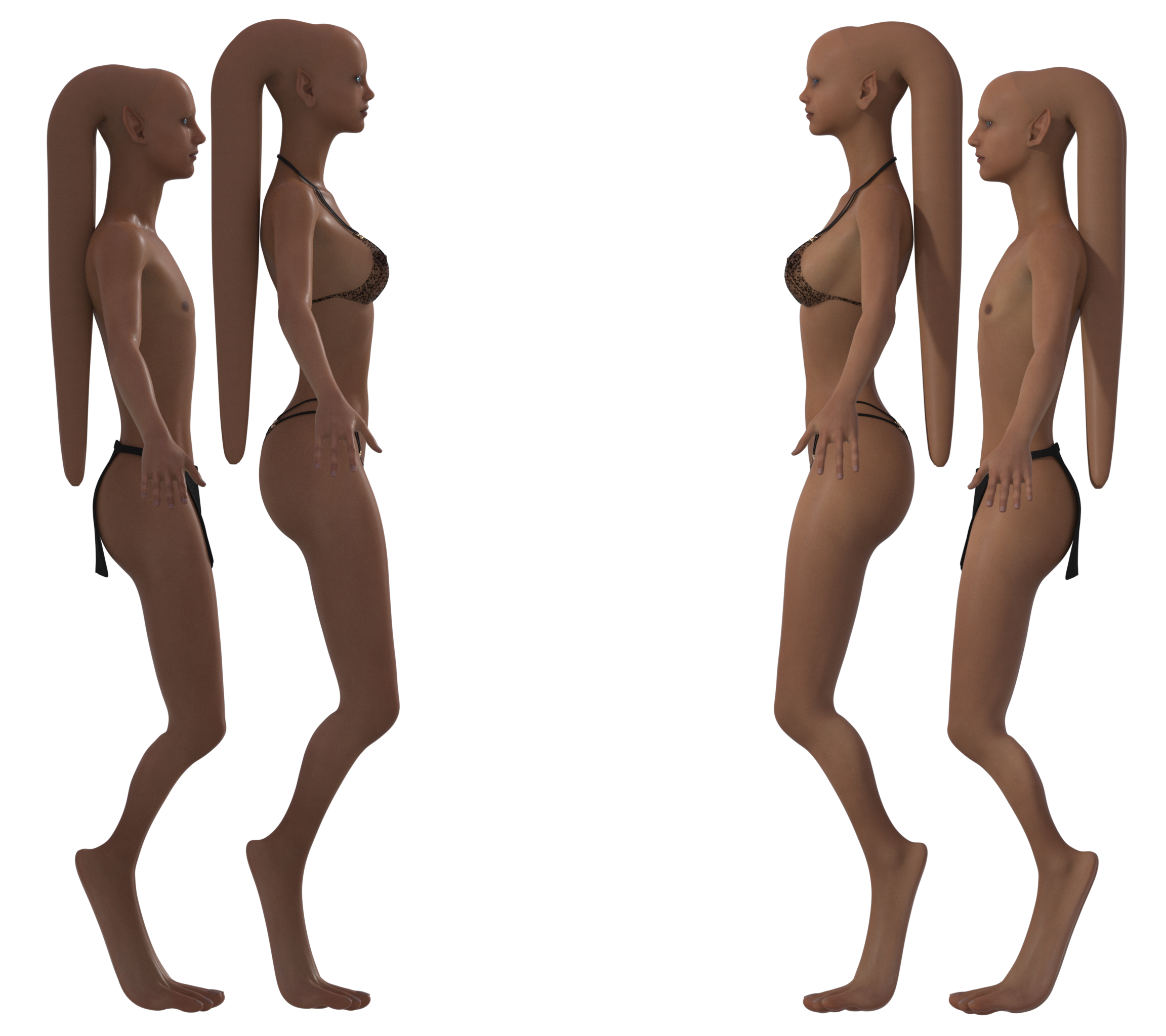 - Females: Slender and elegant with natural curves, though many undergo body modifications to accentuate their features further.